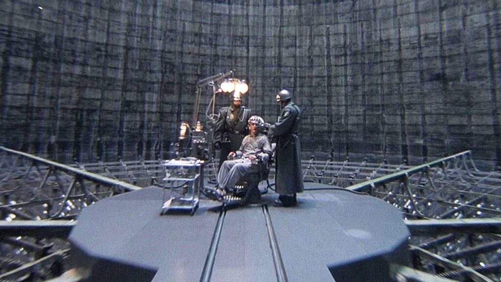 A Gilliam-féle retrofuturisztikus világ egyszerre idézi a harmincas évek dizájnját és a nyolcvanas évek technofóbiáját. A csövekkel és csavarokkal telerakott tereket zúgó gépek és kattogó írógépek népesítik be, miközben a hatalom nyelvét a hideg, könyörtelen adminisztráció beszéli. Ez az esztétika nem puszta díszlet, hanem a hatalom logikájának tükre.